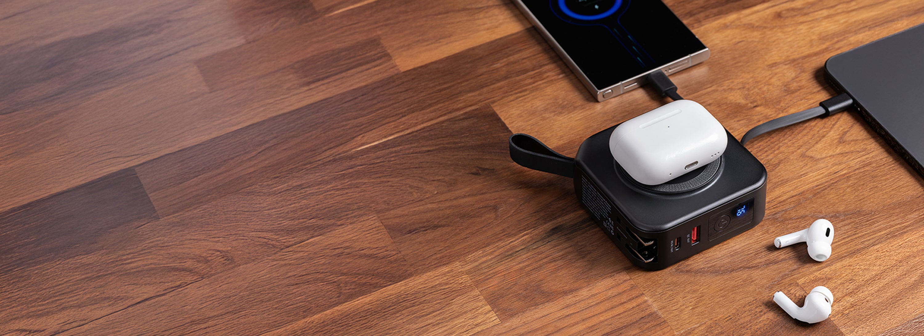 10,000 mAh PowerBank. Holds enough power to recharge an iPhone 15 2 times, a MacBook Air once, or Apple AirPods 12 times.